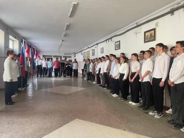 15 апреля в МБОУ "СОШ №18 им. И. И. Богатыря" г. Симферополя прошла торжественная церемония поднятия Государственных флагов Российской Федерации и Республики Крым под исполнение гимнов участниками линейки.