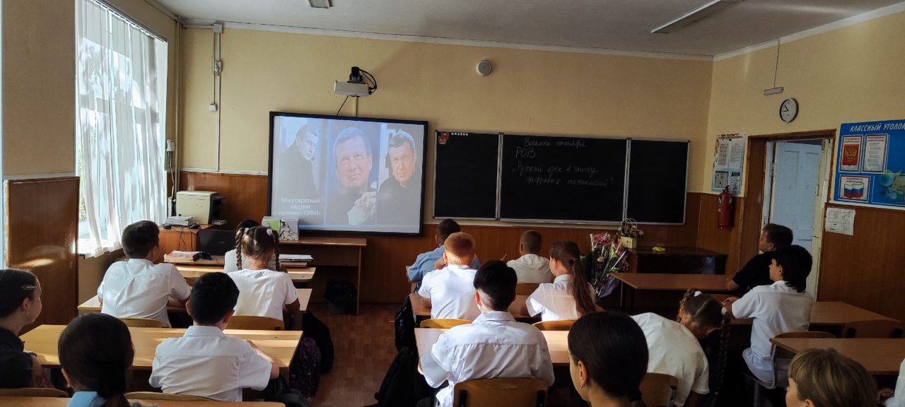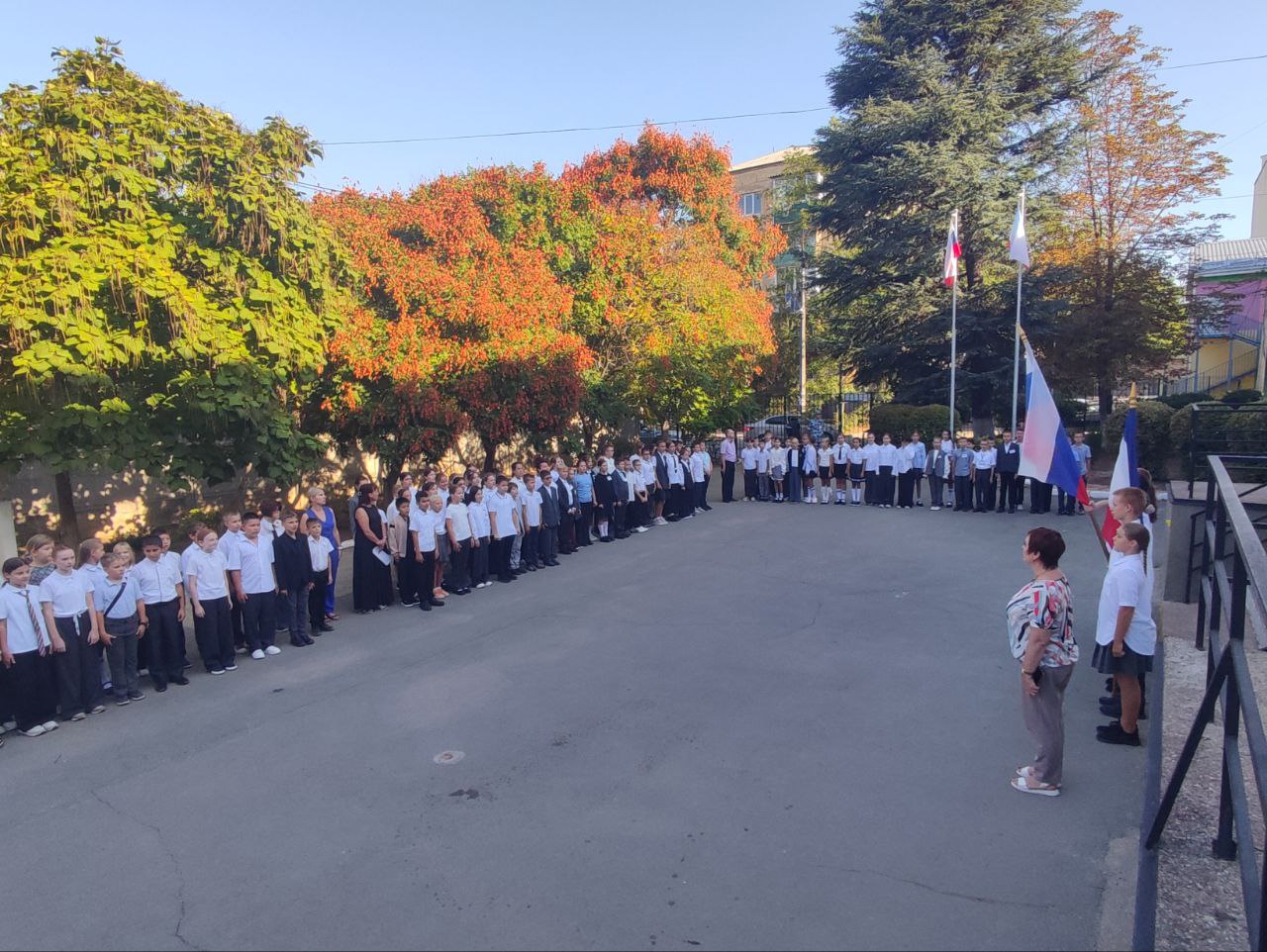 Новая неделя в школе началась с торжественной линейки с исполнением гимна Российской Федерации и гимна Республики Крым. После линейки ребята разошлись на занятие внеурочной деятельности «Разговоры о важном».