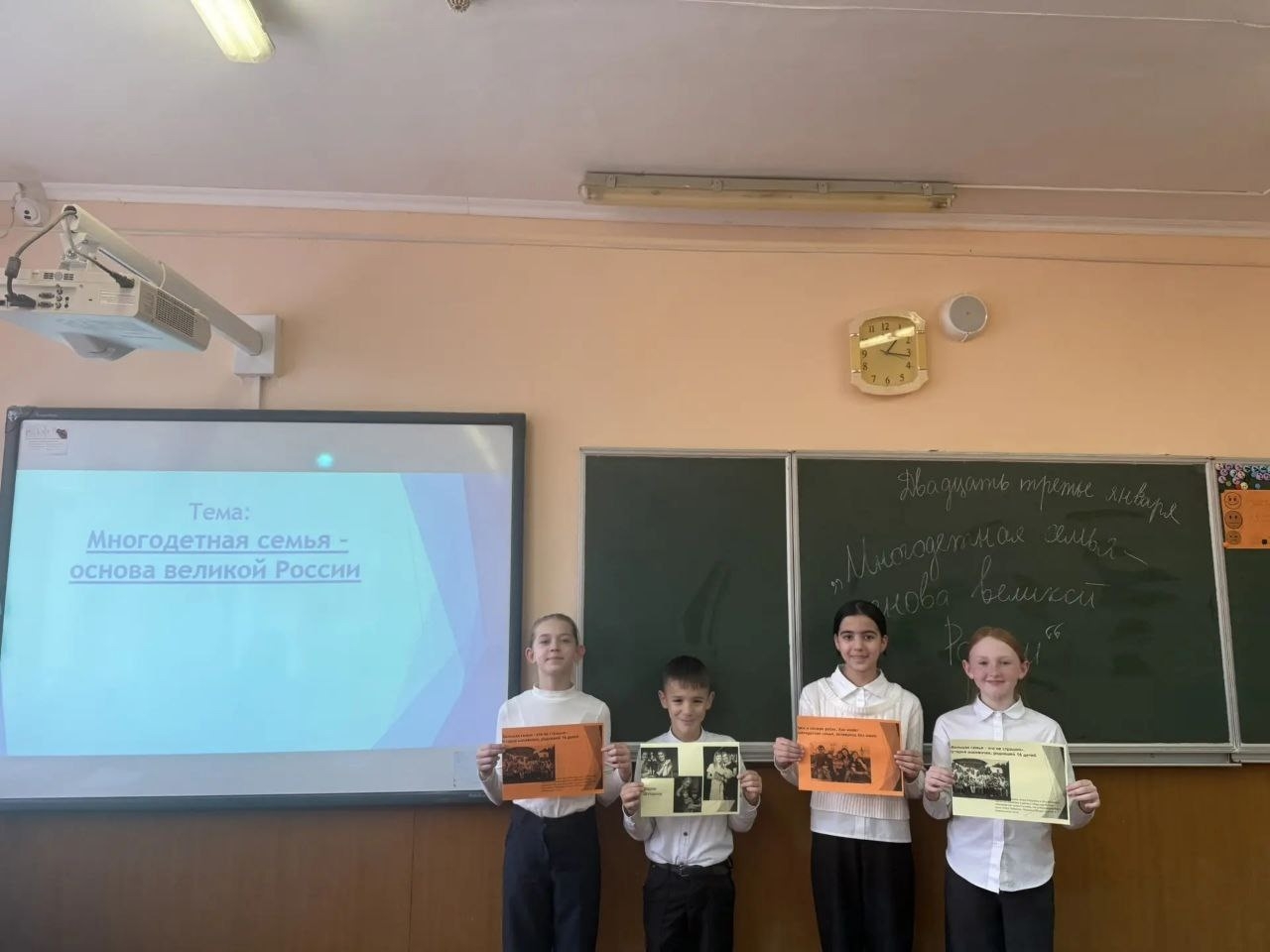 В МБОУ «СОШ №18 им. И. И. Богатыря» для учащихся 5-6-х классов был проведен цикл классных часов на тему «Многодетная семья — основа великой России». Праздник, символизирующий любовь, согласие и уважение к главным семейным ценностям, стал поводом для обсуждения роли семьи в жизни каждого человека и общества в целом.